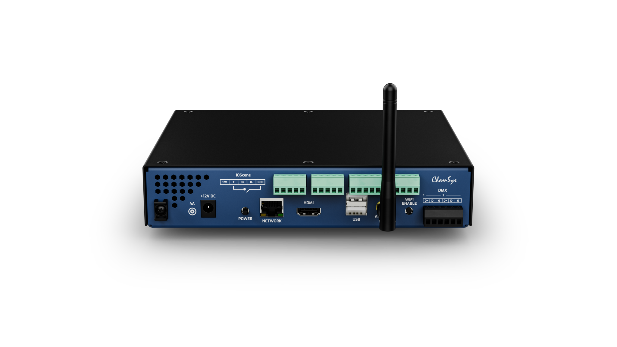 Zijn 24 universes DMX output zijn uitbreidbaar tot 48 en connectiviteitskenmerken omvatten twee RDM-enabled DMX outputs, ingebouwde Wi-Fi voor programmering en afstandsbediening, en vier 10Scene poorten voor het aansluiten van maximaal veertig 10Scene muurplaten.