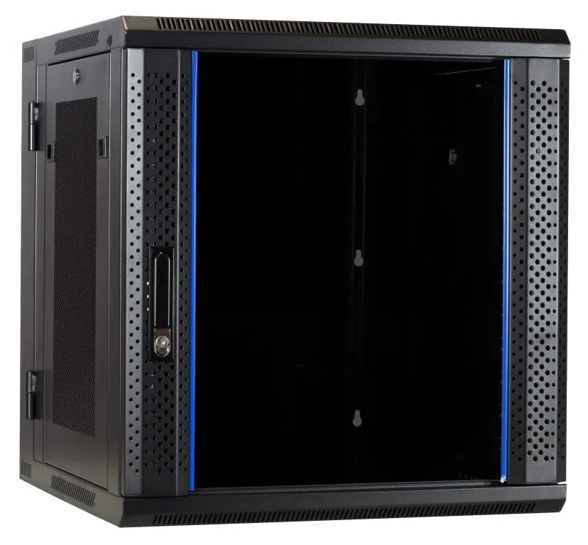 DSIT | 12U wandkast (kantelbaar) met glazen deuren geperforeerde zijwanden 600x600x635mm (BxDxH)