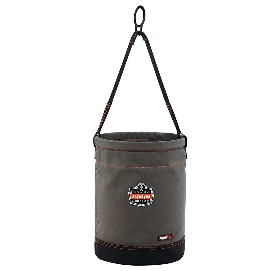Ergodyne canvas emmer met lederen bodem; 24oz canvas; Sterke geweven band; D-ring; max. last 68kg; 12,5"D x 17"H/ 32cm x 43cm; grijs