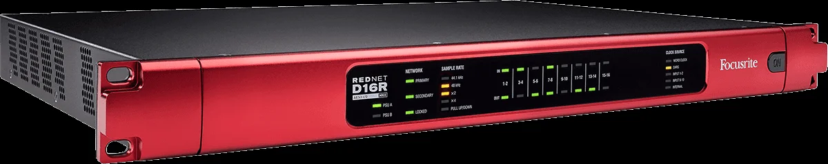 De RedNet D16R MkII is een 16-kanaals bi-directionele AES3-interface voor Dante®-netwerken. Het 1U rackmount-apparaat is voorzien van individuele ingangs- en uitgangskanaalniveauregelingen, waardoor nauwkeurige kalibratie en controle van alle ingangs- en uitgangsniveaus mogelijk is met behulp van RedNet Control. RedNet D16R MkII beschikt over voeding en ethernet-redundantie met automatische omschakeling in geval van storing.