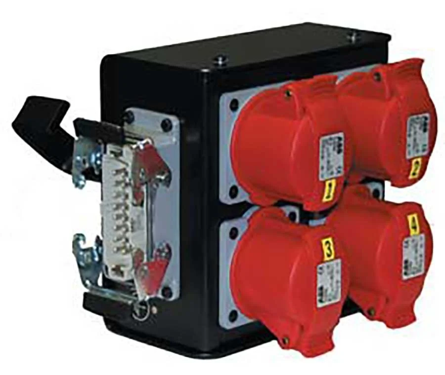 Harting box break-out:1 x male harting 4x female 4p; rood + oogbout + haak