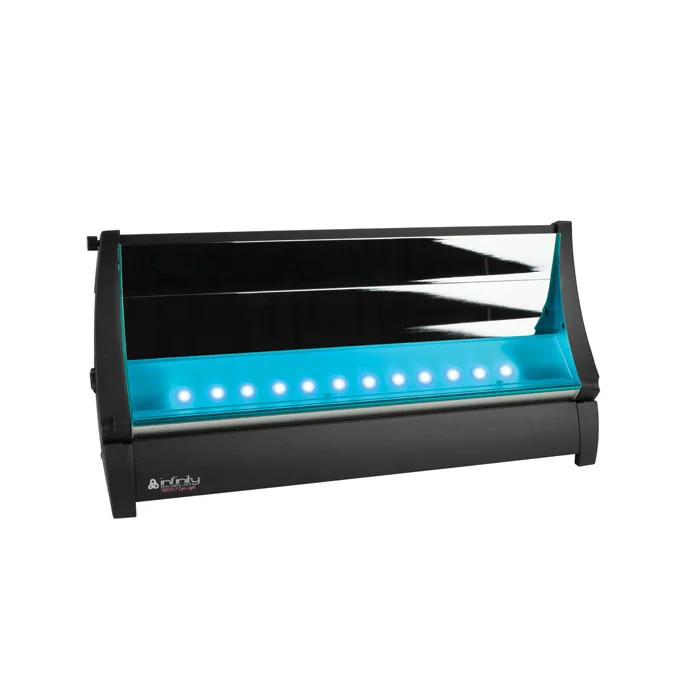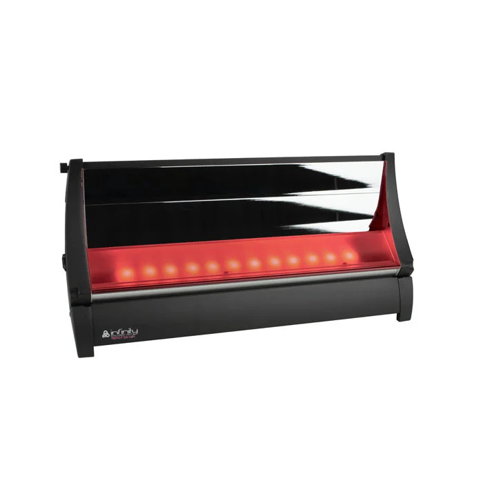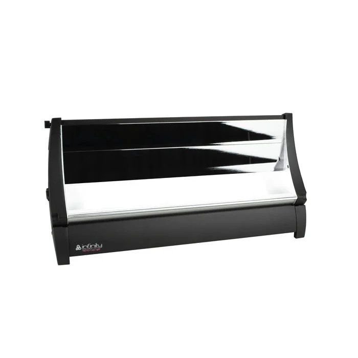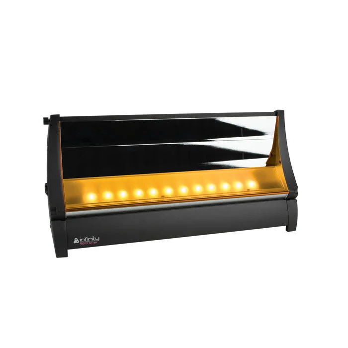 Infinity TCYC-7 Cyclorama is een extreem heldere en krachtige armatuur. Uitgerust met een speciale hoogglans asymmetrische spiegel, is de projectiehoek 75° met een zeer lineaire daling. Een gemotoriseerd tiltbereik van 30° zorgt voor een eenvoudige focus op de vloer of het plafond. De TCYC heeft dezelfde op maat ontworpen 7-kleuren LED-array en intelligente software als de TS-260C7 en de TFLD-7. Het creëert een verbazingwekkend soepele, naadloze bundelprojectie voor uw horizon. Omdat ze gebaseerd zijn op dezelfde technologie die deze 3 gekleurde armaturen in één opstelling combineert, creëert het de perfecte combinatie wanneer licht en kleurkwaliteit nodig zijn.