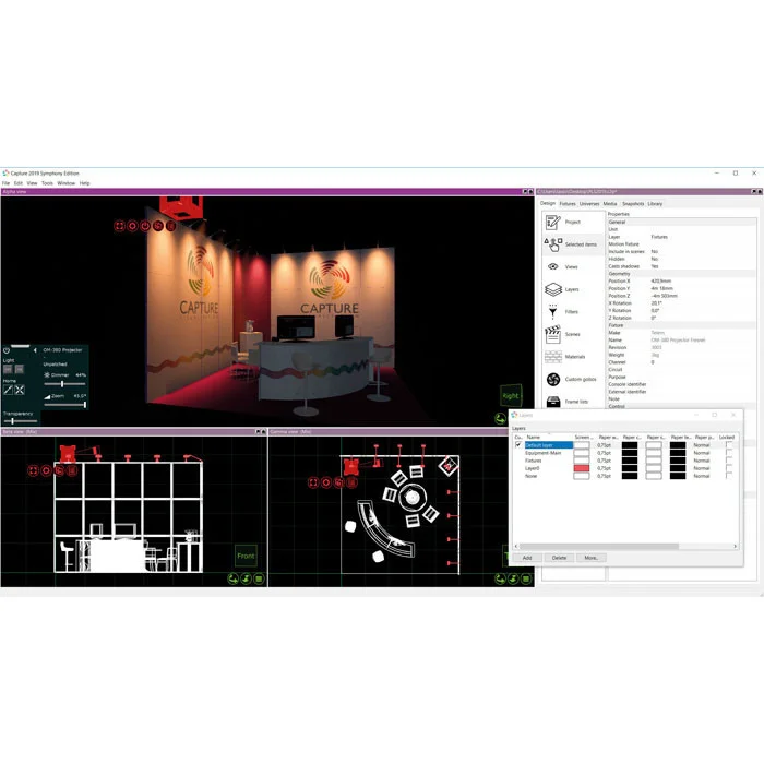 De Capture Duet Edition is een gebruiksvriendelijke ontwerp-, documentatie- en visualisatietoepassing die geschikt is voor verschillende verlichtingsoplossingen. Het stelt je in staat om te werken met verlichting-, video-, laser-, bewegend landschap- en watereffecten op zowel Windows als macOS. Het cross-platform is met name sterk in het snel kunnen schakelen tussen het ontwerp, de documentatie en visualisatie, wat resulteert in een verbeterde workflow en verhoogde productiviteit.