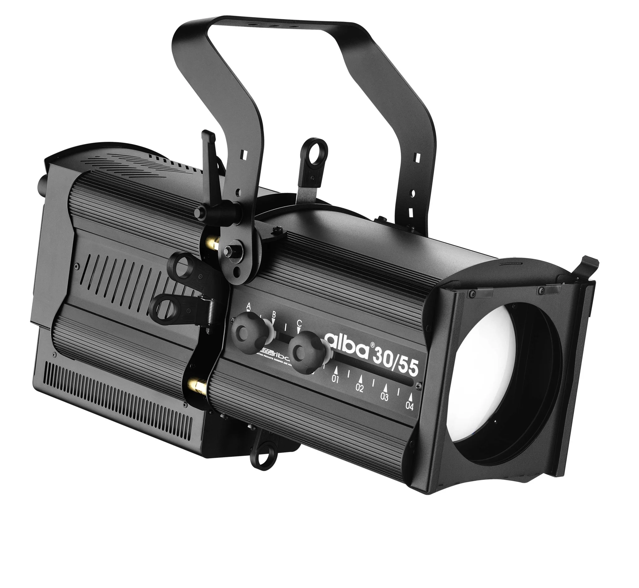 Stijlvol, compact en extreem hoog rendement zeer groothoek LED zoom profiel met een 380W RGBW COB stroombron en dubbele condensator optiek. Alba is DMX/RDM aanstuurbaar voor 16 bit dimming. Ideaal in alle toepassingen waar warmte en energiebesparing van belang zijn. De uiterst nauwkeurige optiek maakt het de voor de hand liggende keuze in theatersets, tv-studio's, commerci‘le displays en architecturale toepassingen waar een uitstekende optische prestatie vereist is. De standaardlevering omvat 2 m netkabel met ingebouwde Power-con en 4 sluiterbladen. Een onlangs toegevoegde nieuwe functie maakt het mogelijk te kiezen uit 10 vooraf ingestelde witten, vari‘rend van 2700K tot 5800K, met behulp van een speciaal DMX-kanaal, waardoor de Alba RGBW in feite ook een afstembaar wit armatuur wordt. Alle modellen in de Alba-reeks zijn verkrijgbaar in 3200K en 5600K wit, RGBW en TW, in een keuze uit 3 afwerkingen: zwart, wit en zilver, en 2 beugels: handmatig en met stokken.