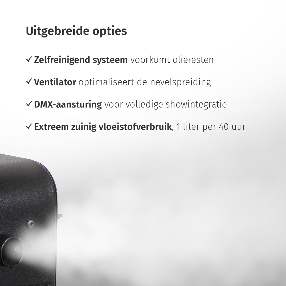 Creëer een subtiele, langdurige nevel die lichtbundels accentueert zonder storende rookwolken. - Live-evenementen en concerten