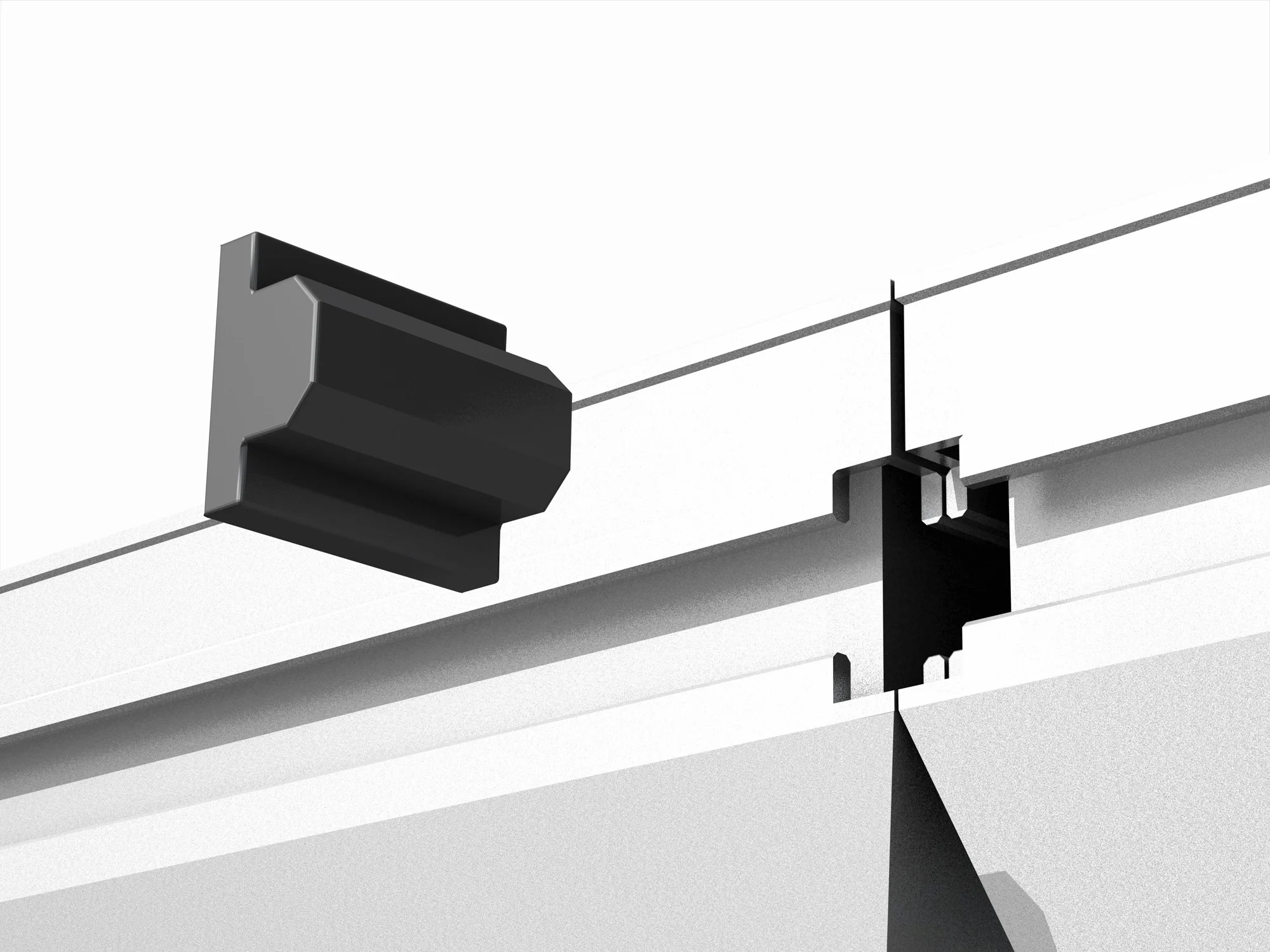 Om de Deck750's op een gelijke lijn te krijgen kunt u dit zelfnivellerende inzetstuk gebruiken dat de dekken op één lijn nivelleert. De levellers worden eenvoudig in het profiel van de Deck750 geschoven en zullen zelf de volgende aangrenzende fase waterpas stellen.