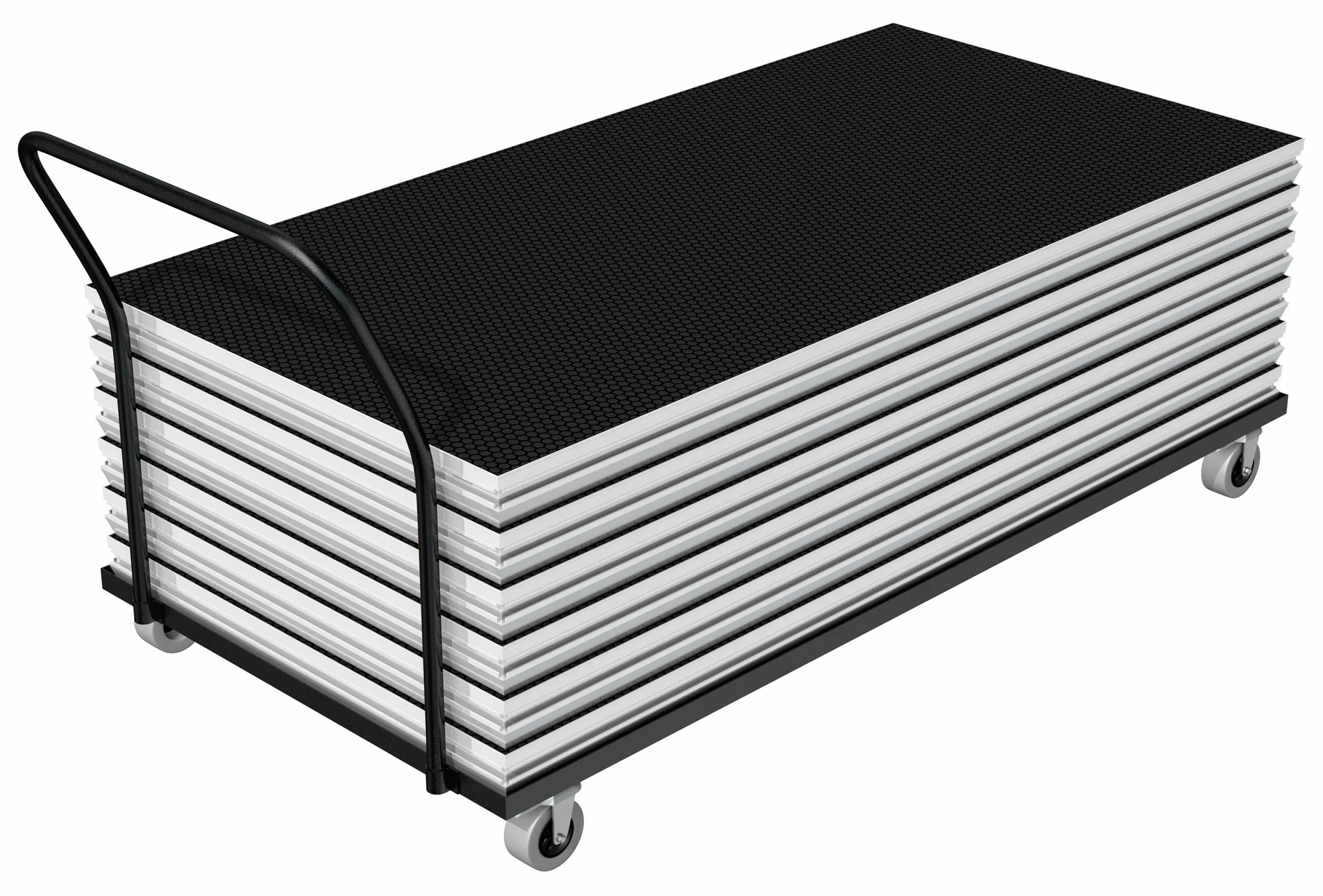 Deze trolley kan 15 Deck750's horizontaal op elkaar dragen. De ideale manier om je vlonders snel en veilig van A naar B te vervoeren.