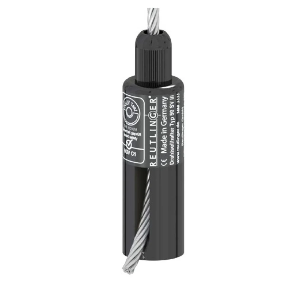 Reutlinger | Staalkabel houder met inwendig schroefdraad | Draaddoorlaat zijkant
