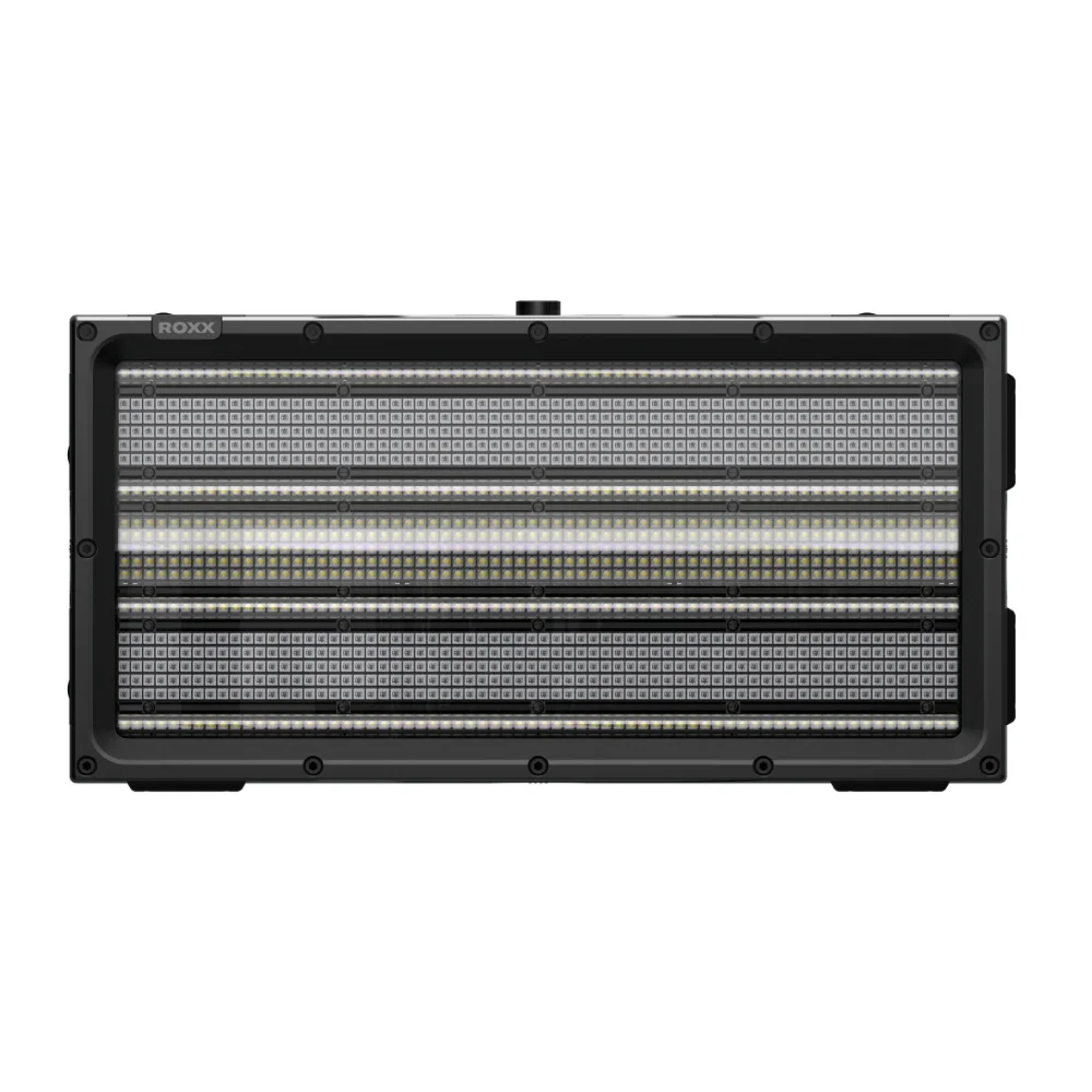 Met HET ROXX Cluster-systeem en de afzonderlijke LED-lijnen OP gelijke afstand van elkaar kunnen doorlopende effecten bewegend over meerdere units worden weergegeven. Op deze manier smelten de units zowel horizontaal als verticaal samen tot een groot geheel. De 4 afzonderlijke, dunne stroboscoop-lijnen kunnen ook worden gebruikt om cijfers, letters en afbeeldingen weer te geven.