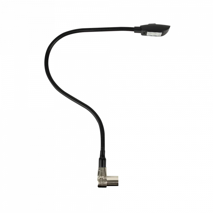 4 witte COB LEDs, voor een kleurtemperatuur van 6000 tot 6500K. De zwanenhals lamp, lengte 300mm, heeft een XLR 4-PIN connector.