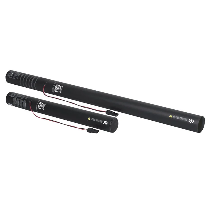 Het Showgear elektrische kanon is een eenmalig te gebruiken kanon, voorgevuld met confetti. Om een elektrisch kanon af te vuren is het Showtec FX Shot (60908) nodig. Het onderste deel van het kanon bevat een drukstikstofpatroon voor een krachtig effect.