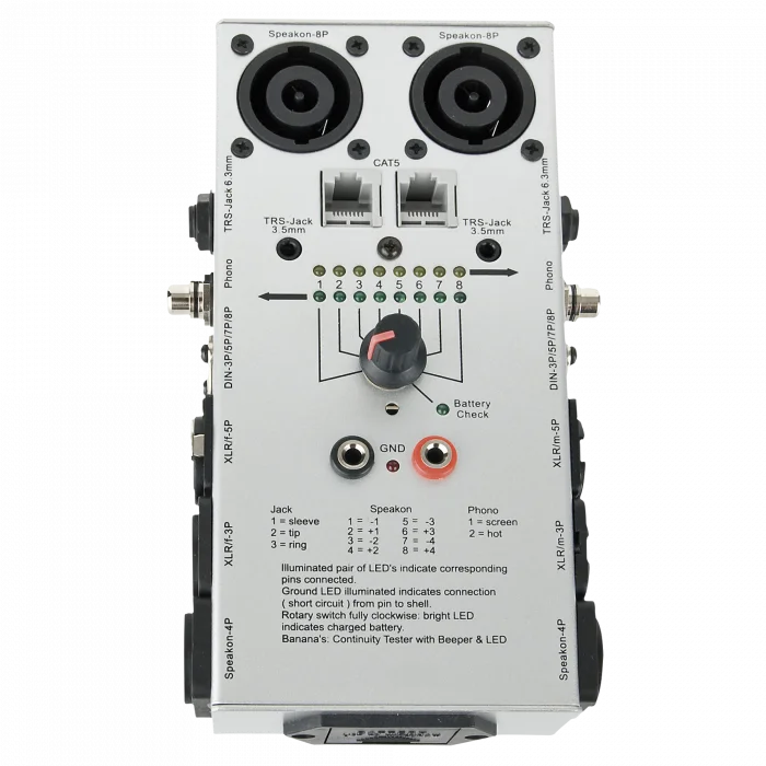 De Cable Tester Pro is uw ideale hulpmiddel voor het controleren van al uw audiokabels.Eenvoudig te gebruiken en road proof.