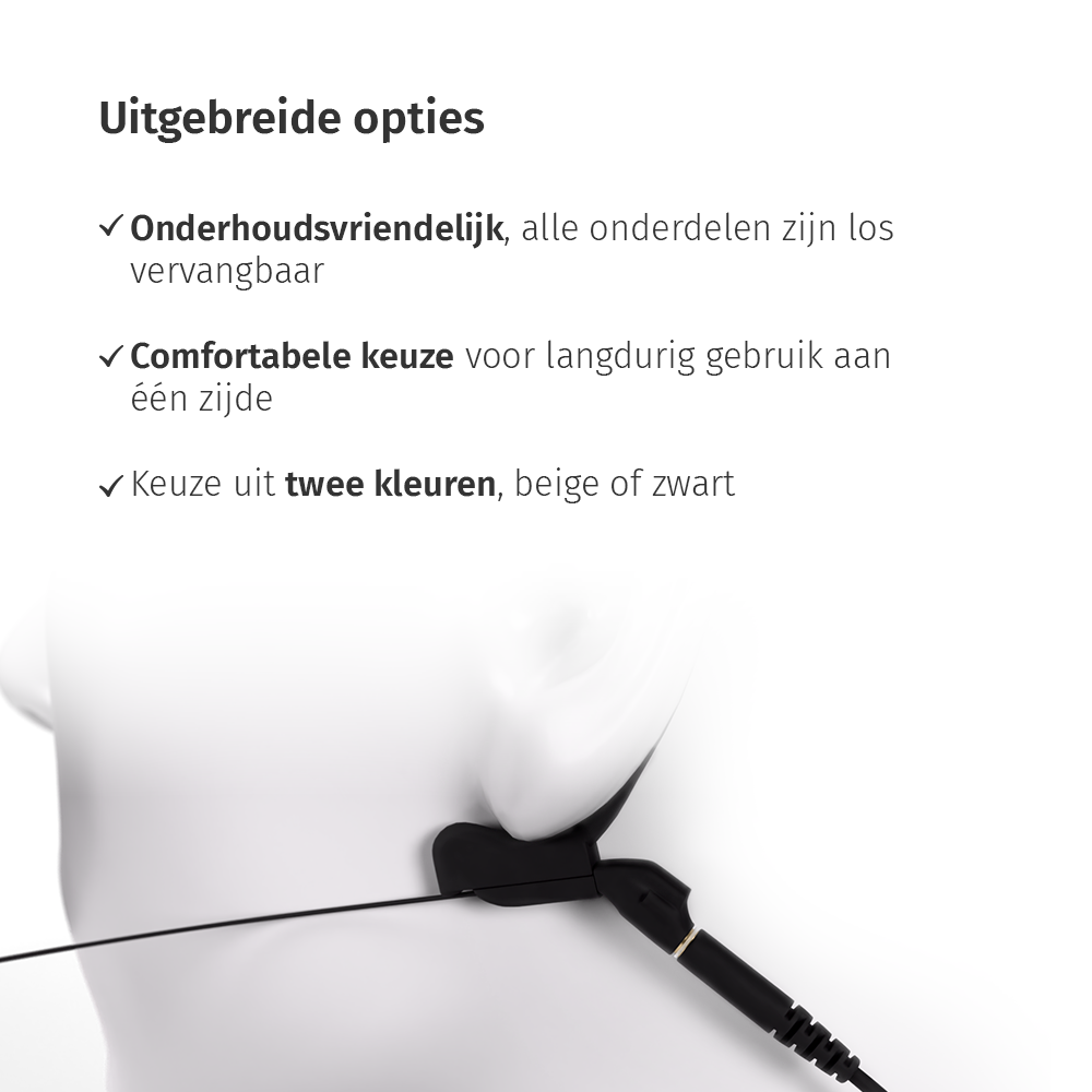 Lichte en comfortabele single-ear beugel, ideaal voor langdurig dragen aan één zijde