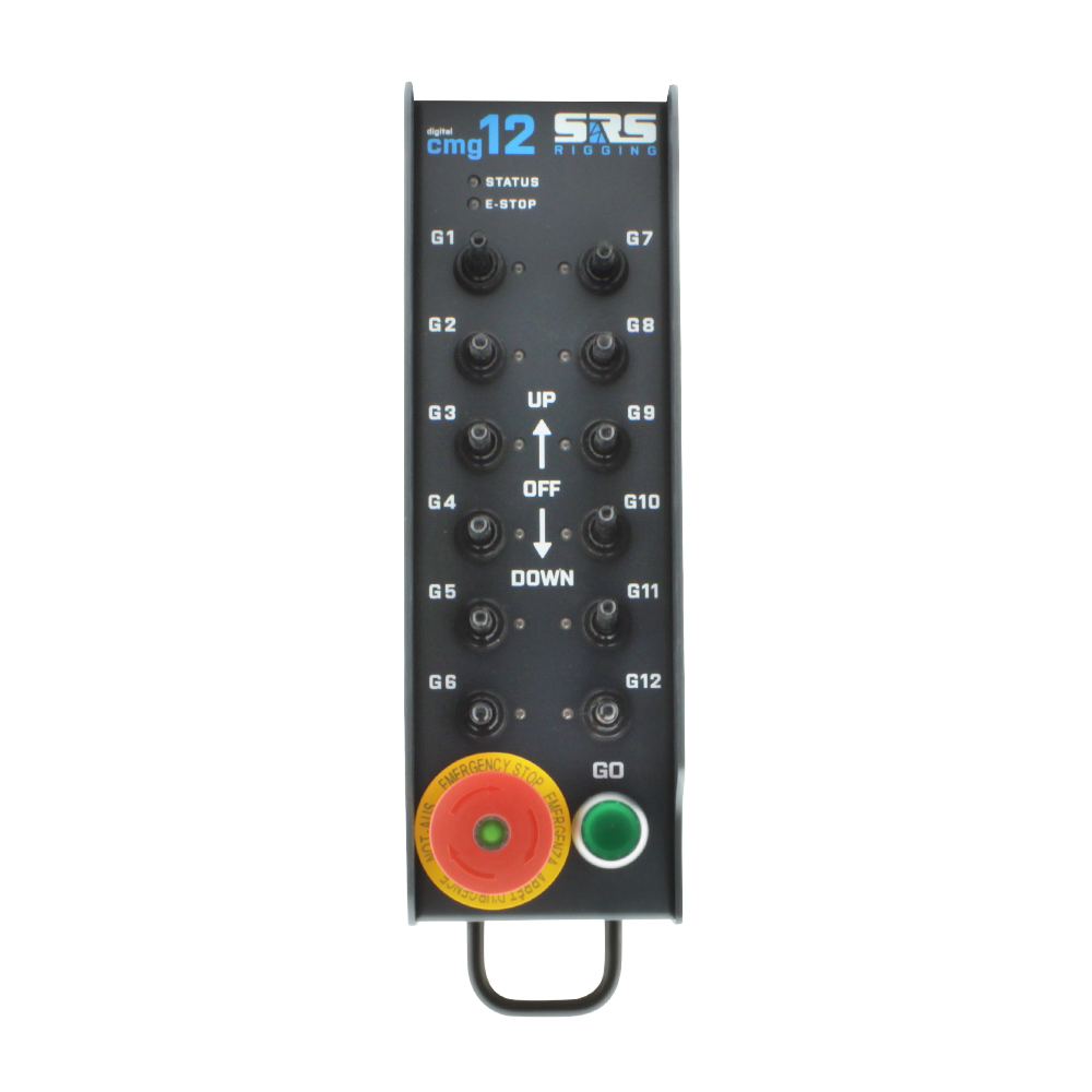 SRS Rigging | CMG12-DIGI-AHD | AHD Digitale group remote 12-kanaals | Bediening: E-STOP - GO - UP+DOWN | Connector: Neutrik XLR 5p