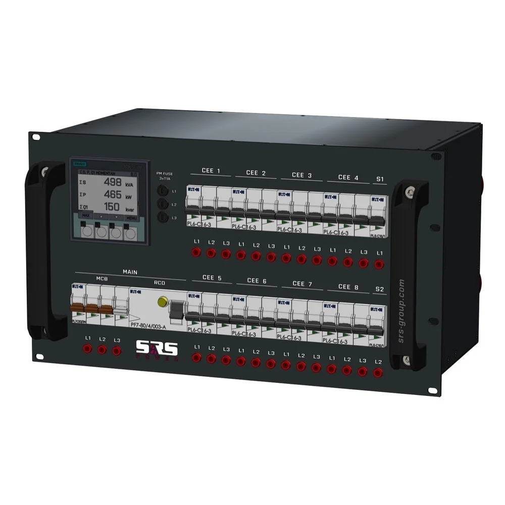 SRS stroom distributie systemen staan wereldwijd bekend als degelijk, uitstekende prijs/kwaliteit verhouding en degelijke geconstrueerd, ze worden toegepast bij grote en kleine evenementen en zijn verkrijgbaar tot 400A per fase. SRS produceert een complete range stroomverdelers voor touring en vaste installatie op klant specificatie!