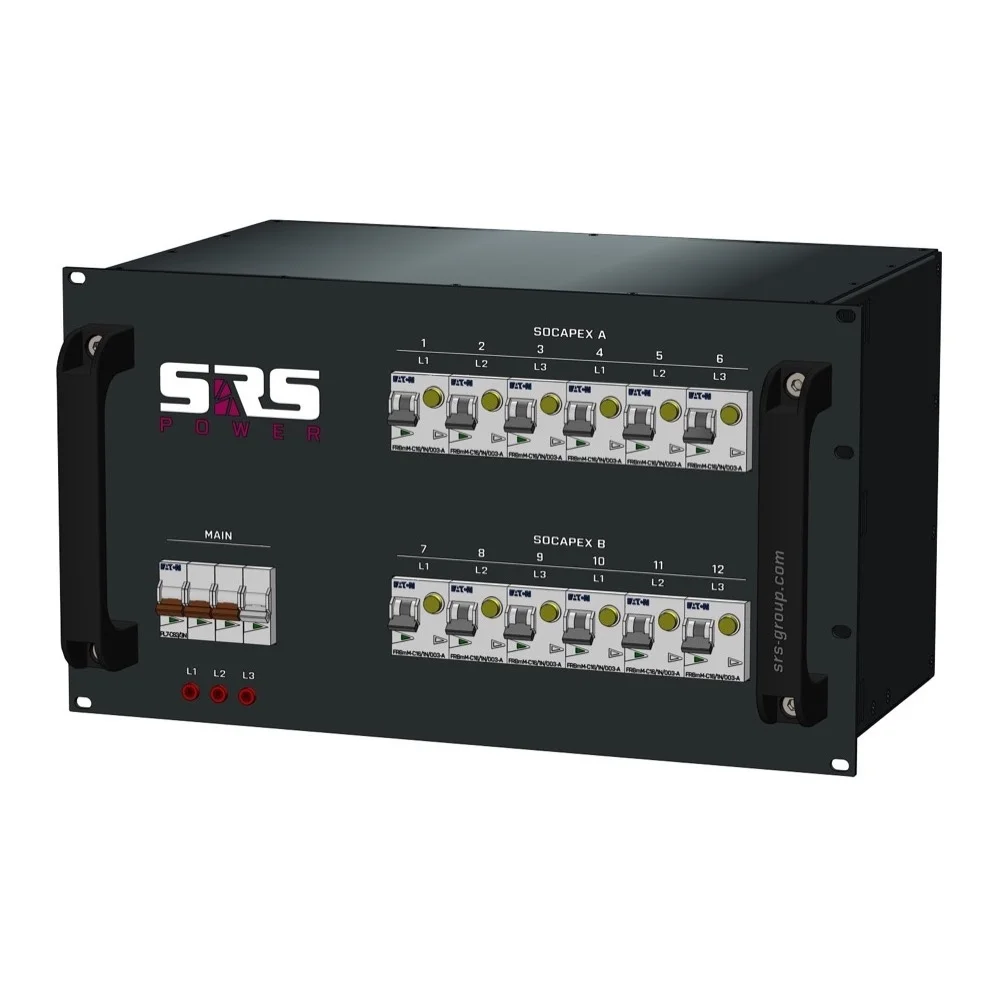 SRS stroom distributie systemen staan wereldwijd bekend als degelijk, uitstekende prijs/kwaliteit verhouding en degelijke geconstrueerd, ze worden toegepast bij grote en kleine evenementen en zijn verkrijgbaar tot 400A per fase. SRS produceert een complete range stroomverdelers voor touring en vaste installatie op klant specificatie!